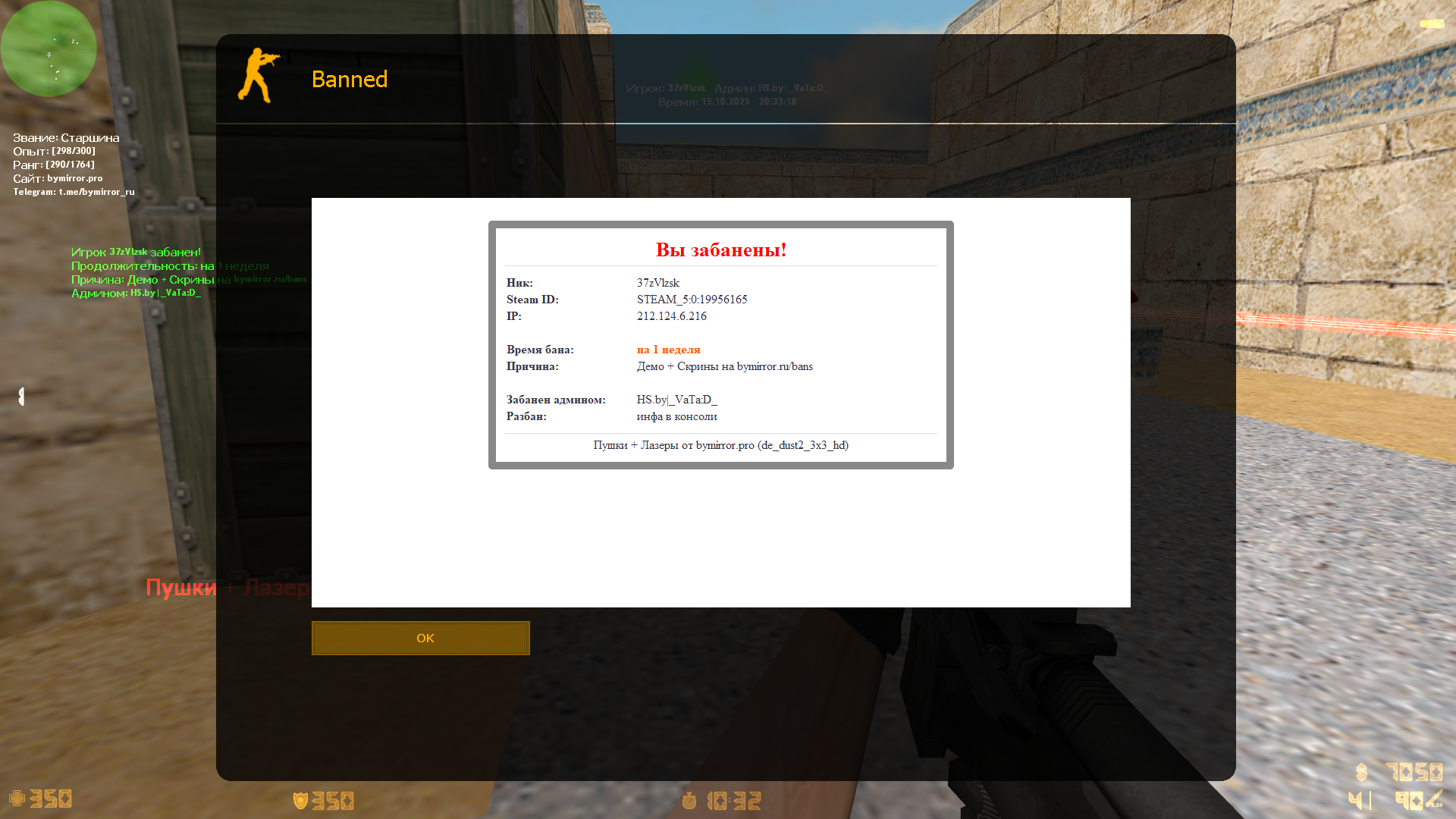 забанен ((( честно , даже не могу сказать что я сделал не так. быть может где то в обед я сделал скрин экрана, что бы поделиться с друзьями, что мой ник на первом месте в команде. прошу понять