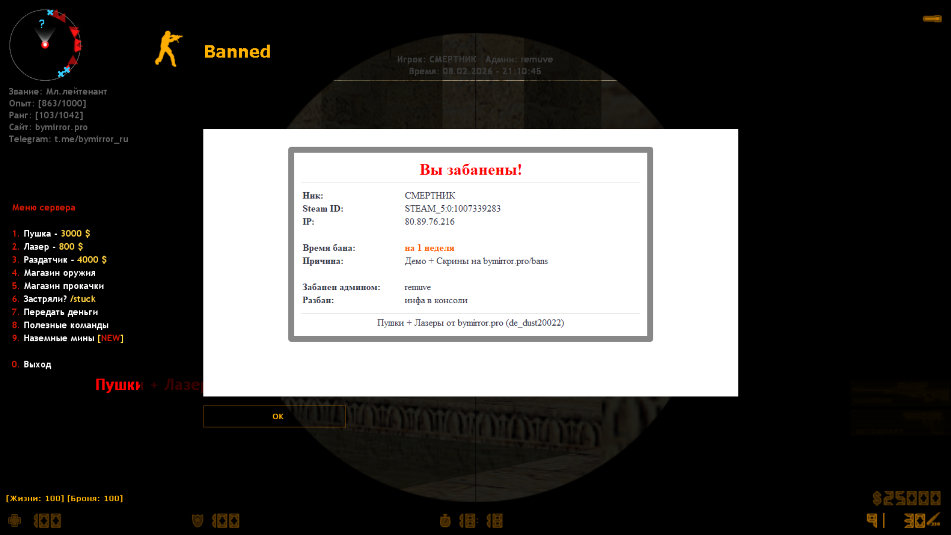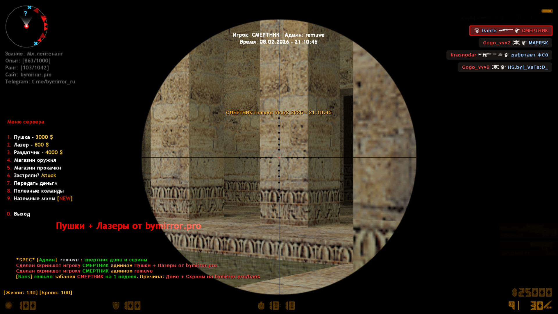 Сервер: Пушки + Лазеры от bymirror.pro